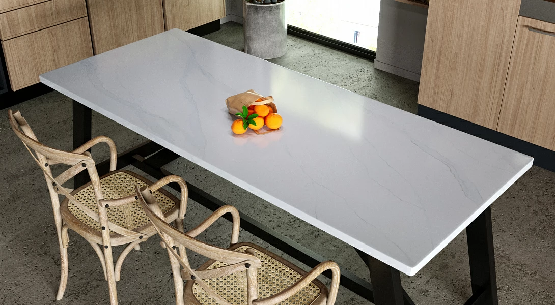 Кварцевый камень Vicostone Calacatta BQ 8800 на 93% состоит натурального кварца. Остальные компоненты — связующая полимерная смола и ингредиенты для создания цвета. Весь процесс создания уникальных цветов коллекции Vicostone автоматизирован. Продукция Vicostone способна переносить большие нагрузки, устойчива к перепаду температур, воздействию кислот, растворителей, обладает антигрибковыми свойствами и безопасна при контакте с пищей.